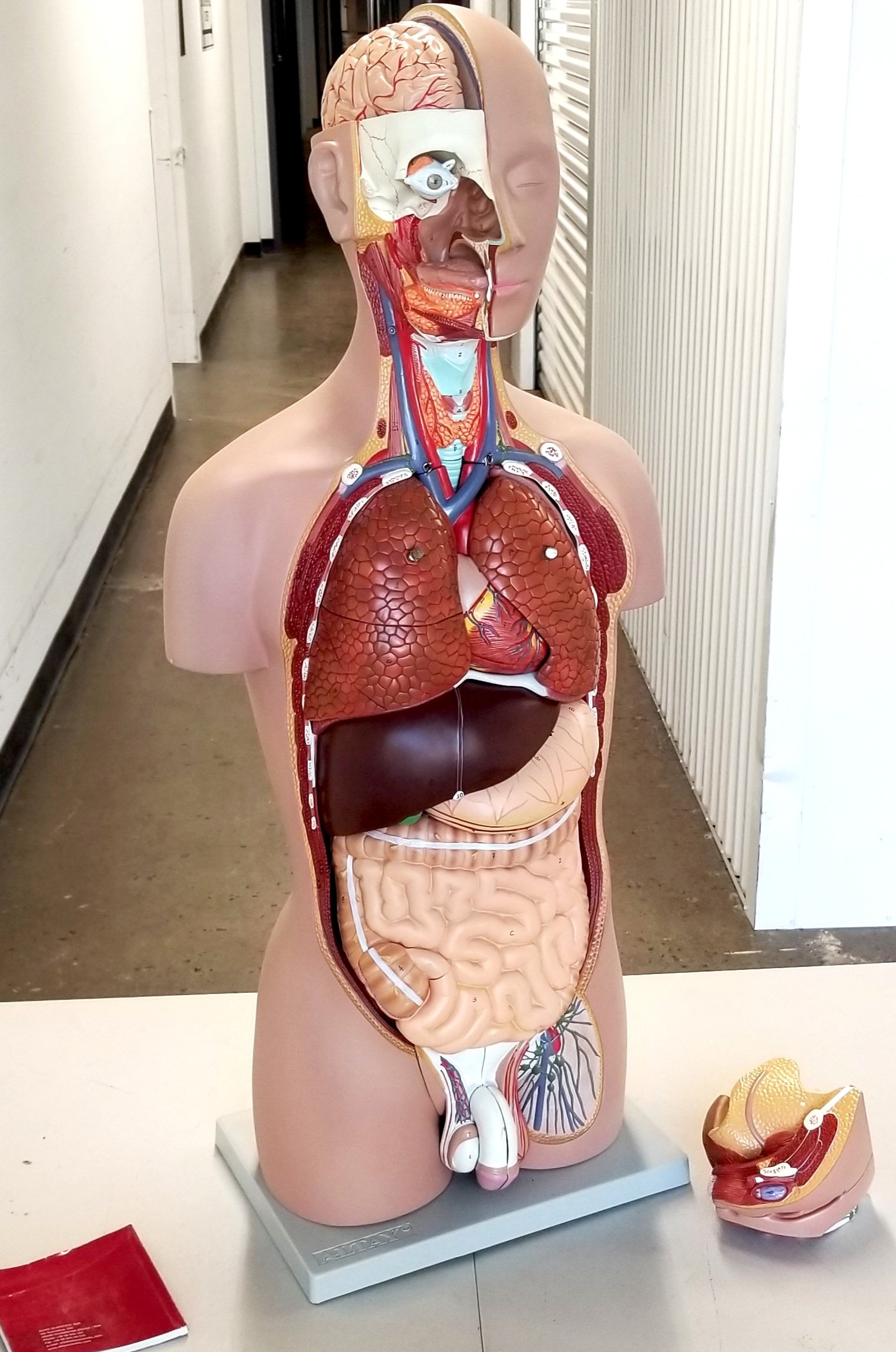 Detachable organs and body parts. Dual sex (Female organs shown lying next to model, can be inserted in place of male organs.) Brand: Altay. Dimensions: H: 35”, W: 16”, D: 9”